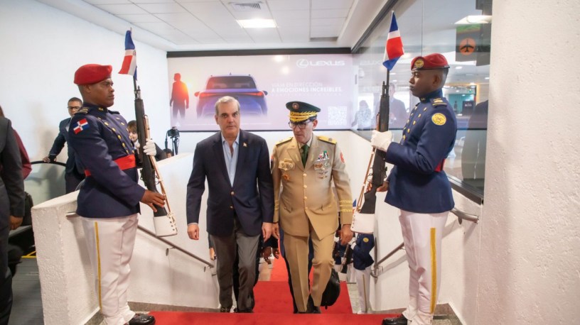 Acompañan al presidente Abinader, el ministro de Relaciones Exteriores, Roberto Álvarez; el encargado de la Secretaría General del Gabinete del Presidente, Eilyn Beltrán; el jefe del Cuerpo de Seguridad Presidencial, mayor general Jimmy Arias y el director de Prensa del Presidente, Daniel García Archibald.